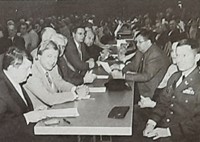 Was Land, Kreis und Gemeinden tun können, dass werden sie laut Bouffiert tun. Wichtig sei es, dass die Verantwortlichen auc hdann, wenn die erste Begeisterung über die neue Halle vergangen sei, sagen könnten, da ist eine gute Sache. Abschließend meinte Bouffiert, bei einer solchen feierlichen Einweihung stelle sich für den Gastredner die Frage, was könne man außer dem Scheck über fünf Millionen Mark mitgringen. Ein Teller an der Hallenwand, davon habe nicht unbedingt jeder etwas, gab der Minister zu dedenken. Dass die Vereine, die Verantwortung hätten, die Halle mit Leben zu erfüllen, sei es nur folgerichtig, den Vereinsgemeinschaften der beiden Stadtteile jeweils 1.000 Mark zu übergeben.