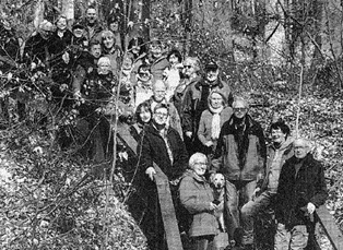 27 Teilnehmer trafen sich am Sonntag am Kirch-Gönser Bahnhof und starteten nach der Begrüßung von Vorstandsmitglied Anita Schwientek zur Wanderung. Die Grenze zwischen Kirch-Göns und Langgöns war Zeil des WRC 97 Kirch-Göns, im Kirch-Gönser Volksmund bekannt als „Rehtreppchen“. Das „Goldene Brückelchen“ trennt die Junge Mark vom Pfarrwald. Bevor diese Brücke gebaut wurde, nannte man diesen Taleinschnitt „Das trübe Loch“. Es war eine trübe nasse Lache im Wald. Wann das „Goldene Brückelchen“ gebaut wurde, ist bis heute nicht bekannt. Es war und ist immer noch ein beliebtes Ausflugsziel. Im Herbst, wann die Baumkronen der Eichen und Buchen lichter werden und die Sonnenstrahlen die kleine Holzbrücke bescheinen, leuchtet das auf ihr liegende Laub goldgelb. „So wird das Brückelchen“ wohl zu seinem Namen gekommen sein, vermutet der Heimatforscher Otto Berndt aus Langgöns. Die Junge Mark gehörte früher zur Gemeinde Kirch-Göns.