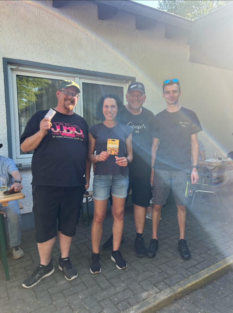 Zur Siegerehrung zum Gewinnspiel von links André Stiene, Tanja Lex, TV-Vorsitzender Thorsten Metz und Felix Maiwald (2. Vorsitzender). Für das Engagement der vielen Helfer und Kuchenspender bedankt sich der TV recht herzlich.