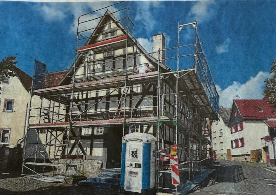 In Kirch-Göns hat die Sanierung der Fassade am historischen Backhaus begonnen. Das berichtet die Stadt. Das Gerüst ist gestellt, erste Zimmermannsarbeiten erledigt. Nun folgen Verputz- und Malerarbeiten. Gefache“, Fenster, Türen und Fachwerk werden überarbeitet. Im Anschluss folgten Arbeiten am Dach, an der Dachwässerung sowie am Kamin. Die Bauarbeiten sollen bis Mitte August andauern.