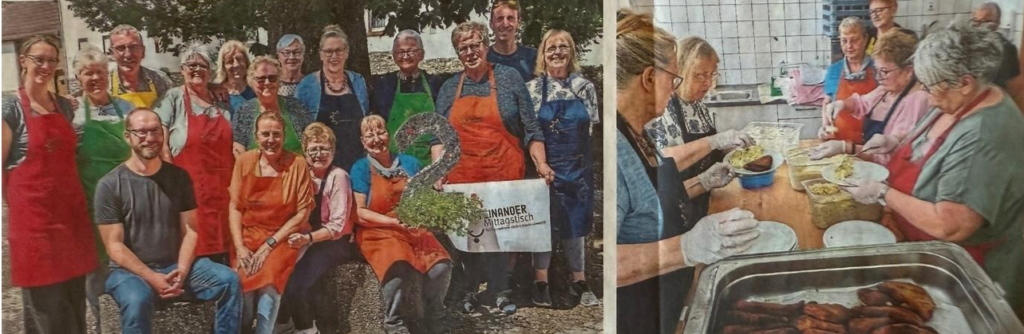 Pfarrer David Lieder und das MiMit-Tem um die zahlreichen ehrenamtlichen Engagierten freuen sich über das zweijährige Bestehen. Ebenso sehr freut man sich über weitere tatkräftige männliche Unterstützung. Jeder, der mitmachen möchte, darf einfach vorbeikommen. In der Küche herrscht Hochbetrieb. Die fleißigen Helfer hatten bei den hohen Temperaturen viel zu tun. Backfisch und Kartoffelsalat stand auf der Speisekarte.