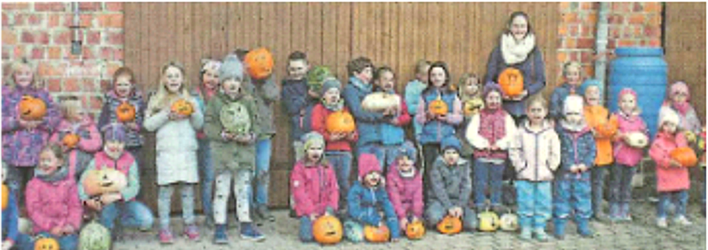 Der Heimat- und Backhausverein, unter der Leitung seines Vorsitzenden Günter Weber, hatte auch in diesem Jahr die Kinder des Ortes zum Kürbisschnitzen eingeladen. Diese Aktion fand im Hof des Vereinsmitgliedes Simone Reinl statt. Viele große, mittlere und kleine Kürbisse in den Farben Rot, Gelb und Grün sowie die erforderlichen Messer und Löffel lagen bereit. Es waren wieder viele Kinder mit ihren Eltern gekommen. Zuerst schnitten die Kinder die Deckel der Kürbisse ab und löffelten das Innere heraus. Dann kam das wichtige Gesichtsschnitzen an die Reihe. Schließlich malten einige Kinder mit Filzstiften Spinnen und Käfer auf die Kürbiskörper: Alle Beteiligten hatten viel Spaß und Freude bei dieser Arbeit. Nach getaner Arbeit hatten sich die Kinder eine Erfrischung verdienst. Außerdem standen etliche selbst gebackene Kuchen zur Auswahl. Die fleißigen Kürbis-Schnitzer ließen es sich gut schmecken und tobten zusammen mit Kater Freddy im Hof herum.