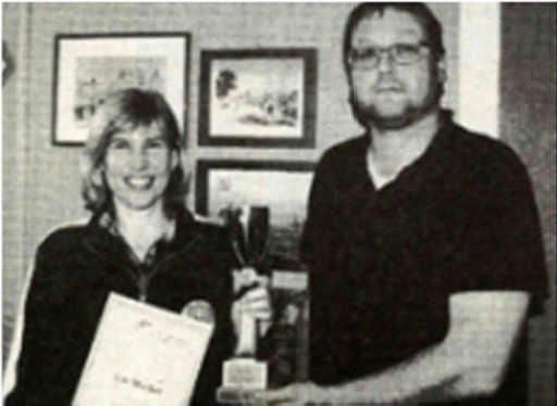 Schützenmeister Christian Müll (r.) gratuliert und ehrt die „Schützin des Jahres“ Ute Möckel (l.)