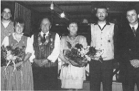 Josef Giebl als Schützenkönig und Martina Boller als Schützenkönigin sind das neue Regenten Paar des Kirch-Gönser Schützenadel. Beiden zur Seite stehen als Mitglieder des Hofstaates l. Ritter Wolfgang Becker, Hofdame Monika Heinz, 2. Ritter Nefzat Aslan und Prinz Markus Häuser. Die Proklamation der Königsfamilie fand anlässlich des schon zur Tradition gewordenen Schützenball am Samstagabend in der Schützenhalle statt. Dort konnte Schützenvereinsvor sitzender Hagen Heinz unter den Gästen auch Besuch aus der Oberpfalz willkommen heißen, sowie die Vertreter der Ortsvereine. Nach einem musikalischen Auftakt der Kapelle „Nobody ist perfect“ nahmen Hagen Heinz und sein Stellvertreter Gunther Müller, die Siegerehrung des diesjährigen Kirch-Gönser Jahresschießens vor, das heuer bereits mm 28. Mal ausgetragen wurde. Über die Ergebnisse des Jahresschießen wurde bereits in der BZ berichtet. Beim Schießen auf die Glücksscheibe gab es ebenfalls einen kleinen Wechsel, denn Bettina Frey, eine etwas noch jüngere „Nichtschützin“ erzielt bei diesem Schießen exakt 152 Punkte und löste Vorjahressiegerin Marlies Müll ab. Weitere Platzierungen: Norbert Boller (Handballeltern der Minis-SG 133 Punkte), Jürgen Rühl (Gesangverein 128 Punkte), Martina Becker (Magic in Par diese/125 Punkte), Gerd Giebl (KC „501″/118 Punkte), Hans Watz (CDU/114 Punkte), Tina Schicketanz (weibliche Jgd. A SG Kirch-/ Pohl-Göns, 114 Punkte), Henning Rusch (Eintracht Fan-Club/112), Steffen Häuser (Kleintierzuchtverein/112 Punkte). und Conny Ewald (Damen II SG Kirch/Pohl Göns/105 Punkte). Großen Anklang fand auch das diesjährige Er & Sie-Schießen und das Schießen mit der Familie. Beim Er & Sie-Schießen belegten Bernd und Renate Mül1er mit insgesamt 235 Ringen den ersten Platz. Dahinter folgten Jürgen und Annerose Dämon mit 216 Ringen und Michael und Christina Knebel mit 191 Ringen. An diesem Wettbewerb durften sich nur Nichtmitglieder beteiligen. Die einzelnen Paare setzten sich wie folgt zusammen: Strickclub „Flinke Nadel“, Kleintierzuchtverein, Schäferhundeverein, Gruppe ,,Magic in Paradise“ und Formel 1 Team. In der Familienwertung belegte mit 327 Ringen die Familie Gerd Häuser den ersten Platz. Bereits zum 33.Mal wurde das Königsschießen ausgetragen. Vor der Proklamation des diesjährigen Schützenadels ließ Hagen Heinz den alten Adel um Jan Osthold und Martina Boller die Zeichen ihrer Würde wie Königskette und Orden an ihre Nachfolger überreichen. In seiner Laudatio auf den neuen Schützenkönig erwähnte Heinz, dass Josef Giebl ein Mann der ersten Stunde, Gründer und Ehrenmitglied sei und seit 33 Jahren auf einen solchen Titel gewartet habe. Ein Rekord zeichnete sich mit dem 2. Ritter Wolfgang Becker ab. Dieser erreichte im Vorjahr den selbigen Titel, ebenso in 1981, 89 und 91. Ein einmaliger Geschwindigkeitsrekord in der Vereinsgeschichte gab es bei dem diesjährigen Schießen innerhalb dieses Wettbewerbs. Bei dem Titel um den 2. Ritter, Nefzat Aslan, kann man es sprichwörtlich so ausdrücken: „Er kam und siegte“. Denn nach nur 70minütiger Mitgliedschaft im SV Kirch-Göns traf er mit vier Schüssen. Schützenkönigin Martina Boller konnte den letztjährigen errungenen Titel erfolgreich wiederholen. In den Jahren 91, 92 und 94war Martina Boller bereits Hofdame. Ihr zur Seite steht Monika Heinz, die Frau des ersten Vorsitzenden. Die diesjährige Hofdame hatte bis jetzt noch keinen Würdentitel errungen. Nach der Proklamation durfte der neue Königsadel den gemütlichen Teil des Schützenballs mit einem Tänzchen eröffnen. Anschließend feierte man bis in den frühen Morgen. Zur Verlosung kam auch in diesem Jahr wieder eine reichhaltig bestückte Tombola, deren Gewinne von Mitgliedern des Vereins und aus der Geschäftswelt gespendet worden waren