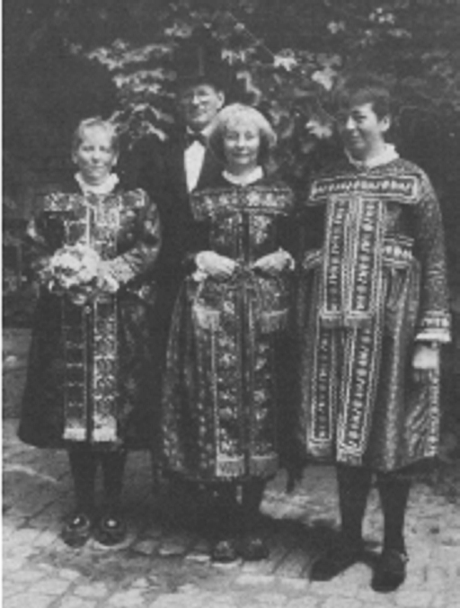 … nahm der Kirch-Gönser Heimat- und Backhausverein am Festzug in Greifenstein-Ulm anläßlich des 100jährigen Jubiläums des Gesangvereins „Liederkranz“ teil. Vor der Abfahrt nach Greifenstein stellten sich (v. l.) Monika Förster, Elke Besler, Christa Schepp und Willi Brückel dem Fotografen.