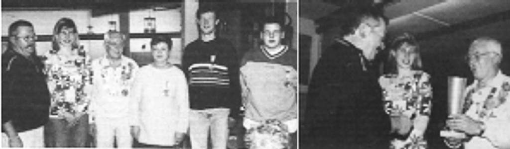 Die neue Königsfamilie 2000 mit (v. l.) 2. Ritter Rudi Stecher, Rudi Stecher, der Stifter des gleichnamigen