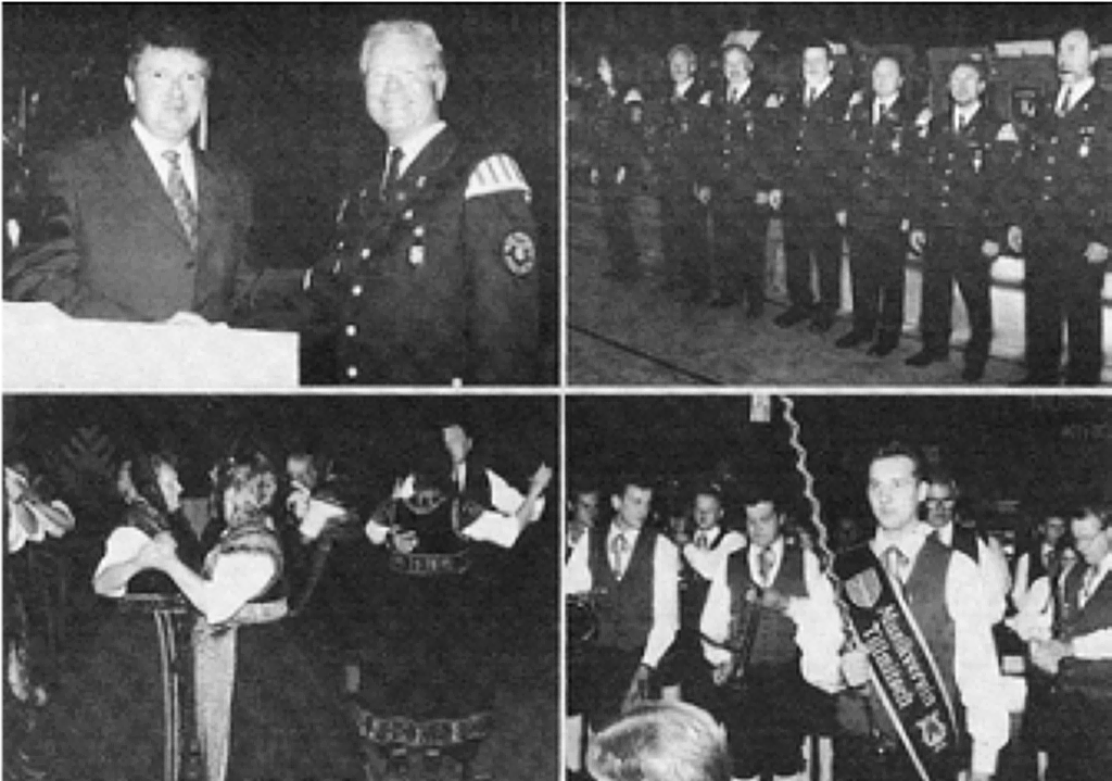 Musik war Trumpf am Wochenende beim 40-jährigen Jubiläum des Kirch-Gönser Musikzuges. Drei Tage lang wurde in der neuen Mehrzweckhalle Kirch-/Pohl-Göns gefeiert, die damit ihre erste große Bewährungsprobe bestand. Natürlich stand Musik im Mittelpunkt des Geschehens. Und die Besucher des 40-jährigen Jubiläums des Musikzuges der Freiwilligen Feuerwehr Kirch-Göns wurden drei Tage lange mit verschiedenen Musikrichtungen und Melodien verwöhnt. Das Jubiläumsfest begann am Freitag mit einer Disco unter dem bei Jugendlichen bekannten Motto „From Dusk Till Dawn“. Das Farmyard DJ-Team legte mit coolen Sprüchen heiße Scheiben auf und sorgte so für die richtige Stimmung. Ein Renner des Disco-Abends war die stets stark umlagerte „Titty-Twister-Bar“, die zum Motto passende Longdrinks anbot. Freitags trafen um die Mittagszeit mit dem Musikzug Tillmitsch aus der Steiermark die ersten auswärtigen Gäste in Kirch-Göns ein. Nach einem gemeinsamen Mittagsessen in der Aula der Mittelpunktschule lernten die österreichischen Musiker ihre Gastfamilien kennen. Abends besuchte die Jüngeren der Gäste die Disco, während sich die älteren Semester im Vereinsraum der Mehrzweckhalle mit ihren Kirch-Gönser Musikkollegen zu einigen gemütlichen Stunden trafen, bei denen die ersten persönlich Kontakte geknüpft wurden. Während am Samstag die Tillmitscher Musiker bei einer Busfahrt, die u.a. auf den Frankfurter Flughafen und in den Hessenpark führte, die nähere Umgebung kennen lernten, traf in Kirch-Gns der Bus mit den Musikern des Spielmannszuges Horneburg ein, die zweite auswärtige Gruppe, die der Musikzug eingeladen hatte. Und die letzten Vorbereitungen für den Kommersabend, der unter dem Motto „Melodie & Rhythmus“ stand, wurden getroffen. Dieser Abend brachte eine Fülle von musikalischen und anderen Höhepunkten in bunter Reihenfolge, begleitet von einer Multimediashow mit Fotos aus der Geschichte des Kirch-Gönser Musikzuges. Eröffnet wurde der Abend mit einem Solo von Walter Müller, dem „Trompeter vom Philippseck“ und dem Stück „Anchors Awaigh“ – Anker gelichtet – vom Musikzug Kirch-Göns unter Leitung von Ralf Wittig. Nach dieser Einführung in den Kommersabend gedachten die Anwesenden der bereits verstorbenen Kirch-Gönser Musiker, während Frank Mader das Lied vom guten Kameraden spielte. In seiner Festansprache konnte Hanspeter Tiedemann, der 1. Vorsitzende des Kirch-Gönser Musikzuges, eine Reihe von Ehrengästen begrüßen, darunter Ehrenbürgermeister Karl-Heinz Hofmann, den Langgönser Bürgermeister Horst Röhrig, Kreisstabsführer Berthold Kaiser, sowie Vertreter verschiedener Parteien, Verbände und Intuitionen. Anschließend erzählte Tiedemann einiges Wissenswertes aus der Geschichte des Musikzuges, während in einer Multimediashow die dazu passenden Bilder jeweils auf einer Großleinwand präsentiert wurden. Leider streikte zeitweise die neue Technik der Mehrzweckhalle, was aber der Bilderpräsentation aus vierzig Jahren Musikzug Kirch-Göns keinen Abbruch tat. Und mit dem schwungvoll und gekonnt vorgetragenen Stück „Over and Out“ ließ der Musikzug die Technikpanne wieder vergessen. In seiner Festrede gratulierte Schirmherr Bürgermeister Oswin Veith dem Musikzug namens der städtischen Gremien zu seinem Geburtstag. Einen so erfolgreichen Musikzug habe nicht jede Gemeinde. Der Kirch-Gönser Musikzug sei eine einzigartige Visitenkarte für Butzbach. Veith ging in seiner Rede auf die Geschichte des Musikzuges ein, der sich großer Beliebtheit erfreue. Veith dankte allen Verantwortlichen für die aus Idealismus zum Verein erbrachten Ausbildungsstunden. Er gab der Hoffnung Ausdruck, dass der Musikzug der Stadt Butzbach noch viele Jahre erhalten bleiben möge und wünschte den Musikern eine auch weiterhin erfolgreiche Zukunft. Als Geschenk der Stadt Butzbach brachte er einen Scheck mit, den er mit einer persönlichen Spende erhöht hatte, damit der Musikzug eine weitere Posaune für die Jugendarbeit erwerben kann. Eine Uraufführung, die mit viel Applaus bedacht wurde, war der Auftritt der Tanzgruppe des Kirch-Gönser Heimat- und Backhausvereins unter der Leitung von Simone Eckhard. Die Tänzerinnen und Tänzer wurden vom Musikzug mit der Melodie „Böhmischer Wind“ musikalisch begleitet. Albert Ceh, Helmut Ceh, Klaus-Dieter Herbel, Kurt Schwarzer, Egon Müller und Helmut Rühl wurden für ihre herausragenden Verdienste um den Musikzug Kirch-Göns von Kreisstabführer Berthold Kaiser mit dem Ehrenzeichen in Gold des Landesverbandes der Feuerwehrmusiker ausgezeichnet. Diana Hentschel vom Spielleuteorchester Pohl-Göns erhielt für Engagement das Ehrenkreuz in Bronze. Als Ehrengäste sprachen Hagen Heinz für die Interessengemeinschaft der Kirch-Gönser Vereine, der stellvertretende Kirch-Gönser Ortsvorsteher Rolf Schulze, der 1. Vorsitzende des Butzbacher Vereinsrings, Robert Werner, und der Langgönser Bürgermeister Horst Röhrig Grußworte und wünschte dem Jubiläums-Verein für die Zukunft alles Gute. Seit vielen Monaten schon hatten etliche ehemalige Musiker des Kirch-Gönser Spielmannszuges und des Fanfarenzuges für einen Auftritt am Kommersabend geübt. Etliche der Musiker hatten dabei erstmals wieder seit vielen Jahren ein Instrument in die Hand genommen. Umso hörenswerte waren die Melodien, die als Ergebnis vieler Übungsstunden vorgetragen wurden. Der ehemalige Spielmannszug intonierte auf der Bühne den Marsch aus Petersburg, den Egerländer Marsch und die Ambosspolka. Dabei zeigte es sich, dass die Musiker nichts von ihrem Können verlernt haben. Danach marschierte der ehemalige Spielmanns- und Fanfarenzug in die Halle ein. Unter viel Mühen waren alle alten blauen Uniformern mit Koppel und weißer Mütze ausfindig gemacht worden. Unter Leitung von Egon Krämer haben diese Musiker nach Kassettenrekorder, Grifftabelle und gutem Gehör und Erinnerungsvermögen die Stücke Fanfarenmarsch Nummer Eins und Zwei, Preußens Gloria und R