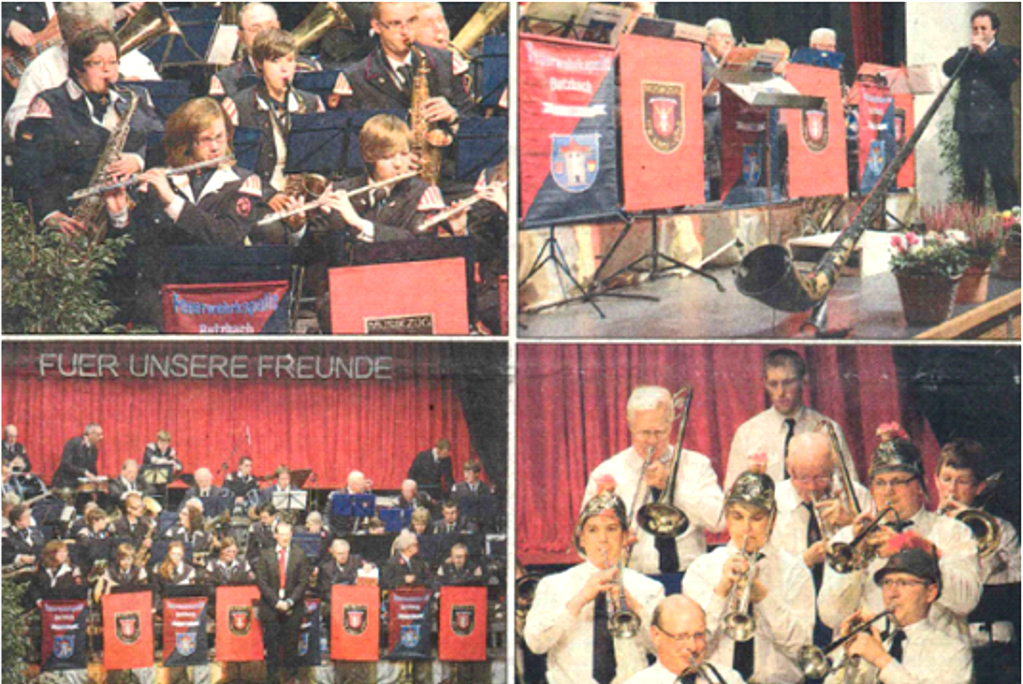 Mit einem knapp dreistündigen Konzert begeisterten die Musikerinnen und Musiker der Feuerwehrkappelle Butzbach und des Musikzuges der Freiwilligen Feuerwehr Kirch-Göns über dreihundert Besucher in der Alten Turnhalle unter dem Motto „Für unsere Freunde“. Die beiden Klangkörper erfreuten ihr Publikum mit einem abwechslungsreichen Programm und zeigten dabei eine beeindruckende Bandbreite ihres musikalischen Könnens. Den ersten Teil des Abends bestritt die Butzbacher Feuerwehrkapelle unter Leitung von Frank Mader. Moderater Dennis Schmidt begrüßte das Publikum und führte durch das Programm, das mit dem Stück „Happy Music“ von James Last begann. Es folgte der Konzertmarsch „Textilaku“ (Marsch der Textilarbeiter) des tschechischen Militärmusikers Karel Padivy. Dann ein erster Höhepunkt mit „Alphornzauber“ von Hans-Reiner Schmidt. Diese Melodie entführte die Zuhörer auf eine schweizer Almwiese. Und Dirigent, pardon Senner Frank Mader persönlich ließ dabei ein originales Alphorn erklingen. Aus dem Alpenland ging es musikalisch weiter ins Egerland mit „Egerländer Musikantenfest“. Diese Musik erfreut sich großer Beliebtheit in Deutschland. Den Sound der 1970-er Jahre ließ die Feuerwehrkapelle mit dem Potpourri „Les Humphries in Concert“ wieder auferstehen. Anschließend ersetzte Andreas Tröster mit seinem Saxophon bei „The Whiter Shade of Pale“ den Gesang dieses weltberühmten Liedes. Mit einem Potpourri seiner besten Musikstücke sagten die Musiker „Dankeschön Bernd Kämpfert“. Mit „Pusztazauber“ von R. Schneebiegel folgte ein Stück der neuen böhmischen Blasmusik. Michael Thate und Frank Mader brillierten mit dem Tenorhorn als Solisten beim Musikstück „Österreicherin“ von Dalibor Barta. Mit einem furiosen „Kometenflug“ von Alexander Pfluger beendete die Butzbacher Feuerwehrmusiker den ersten Teil des Konzertes, vom Publikum mit langanhaltendem Applaus belohnt. In der Pause wurde der Kirch-Gönser Erwin Reinhard für vierzig Jahre aktiven Dienst in der Feuerwehrmusik mit dem Ehrenzeichen in Gold für Hessische Feuerwehrmusiker von Bezirksstabführer Paul-Heinz Eckhardt aus Florstadt ausgezeichnet. Nach der Pause begann der Musikzug der Freiwilligen Feuerwehr Kirch-Göns unter der Leitung von Andreas Tröster seinen Teil des Konzerts mit der deutschen Nationalhymne. Moderatorin war hier Jennifer Menk. Es folgte ein gelungenes Arrangement der Tritsch-Tratsch-Polka von Johann Strauß (Sohn). Auch ohne Streichinstrumente ein erfrischendes, munteres Musikstück. Mit der als Swing von Johny Ocean arrangierten Ouvertüre der Oper Wilhelm Tell erinnerten die Musiker an Gioacchino Rossini. Und mit „Pop looks Beethoven“, einer speziellen Variante der 5. Sinfonie, erinnerten die Feuerwehrmusiker an den Musiktitanen Ludwig van Beethoven, um anschließend mit einer Instrumentalversion für Blasmusik von „Apache“ von den Shadows wieder in die Moderne zu springen. Danach erzählte die alte Schildkröte „Nesaaja“ (Peter Maffay) den kleine Drachen Tabaluga ihre Lebensweisheiten. Eine Sonderapplaus ernteten Patrick Günther und Rolf Mohr als Waldhorn-Solisten beim „Hornfestival“ von Kurt Gäble. Mit der African Symphony von Van McCoy. Wurden die Zuhörer in die Weiten der afrikanischen Steppe entführt. An den weltberühmten Filmmusik-Komponisten Einio Moricone erinnerte ein Medley der bekanntesten Stücke, darunter „Spiel mir das Lied von Tod“. Mit einer Überarbeitung für Blasorchester des Radetzky Marsches beschloss der Kirch-Göns Musikzug den zweiten Konzertteil, ebenfalls von langanhaltendem Applaus für seine Aufführung belohnt. In einer kurzen Ansprache dankte Robert Werner, der Vorsitzende des Butzbacher Vereinsrings, für die Einladung zum tollen Konzert und wies darauf hin, dass in den nächsten Jahren viele Musik- und Gesangsverein Jubiläen feiern würden. Er fordere dazu auf, hier aktiv mitzuarbeiten. Und dann kam furioses und so nicht erwartetes Finale beider Klangkörper auf er Bühne. Angekündigt wurde ein „Marschkonfetti“, das mit gespieltem Durcheinander nach wenigen Sekunden schrill abbrach. Und dann ging auf der Bühne die Post ab, an der Musiker wie Publikum riesigen Spaß hatten. Rund dreißig Märsche waren zu einem Medley arrangiert worden. Dirigent Andreas Tröster tat so, als gäbe es Streit zwischen ihm und den Musikern über das richtige Spielen des Stückes. Und die Musiker antworten mit tollen Eskapaden, setzten verschiedene Hüte auf, trillerten auf Karnevalspfeifchen, warfen Konfetti in die Luft, ließen Luftballons steigen und prosteten mit Sekt einander zu. Ein gespieltes Durcheinander, das sicherlich mehr Probenzeit gekostet hatte als alle anderen Musikstücke zusammen. Und bei all dem immer das super musizierte Medley, ein wahrer Ohren- und Augenschmaus. Mit alten Kameraden-Märschen in moderner Fassung sowie dem Deutschmeister Regimentsmarsch beendeten die Musiker der beiden Klangkörper den offiziellen Teil des Konzertes. Auf donnernden, langanhaltendem Applaus des Publikums hin gaben die Musiker mit „Wir Musikanten“ und dem „Steigermarsch“ noch zwei Zugaben, bei denen das begeisterte Publikum mit klatschte. Jennifer Menk dankte dem Publikum fürs Kommen und allen Musikerinnen und Musiker sowie den vielen Helfern für ihr Engagement.