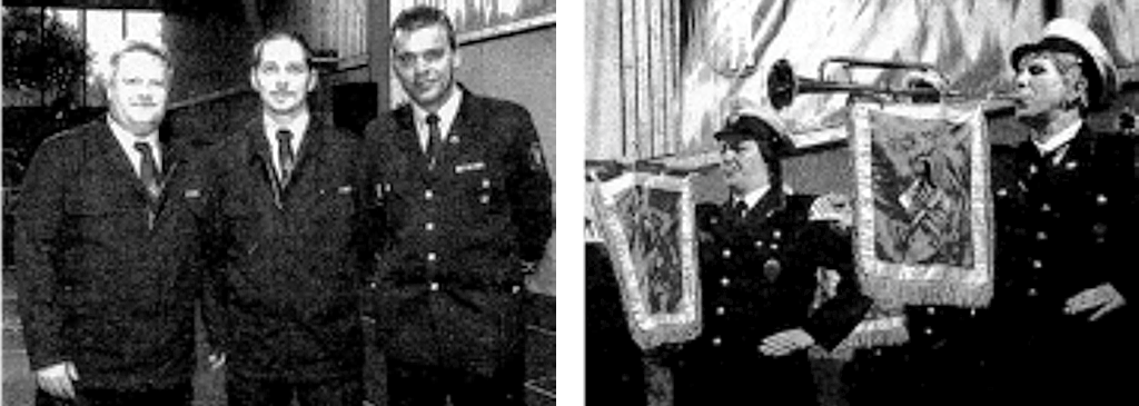 Mit einem Festwochenende beginn die Freiwillige Feuerwehr Kirch-Göns die Jubiläumsfeier zum 100-jährigen Bestehen. Stephan Steiner von der Einsatzabteilung wurde für 25 Jahre Mitgliedschaft vom 1. Vorsitzenden Markus Mohr und Wehrführer Jörg Winter mit einer Ehrenurkunde ausgezeichnet (Bild o. l.). Der ehemalige Kirch-Gönser Fanfarenzug spielte auf (Bild o. r.). Die Showtanzgruppe „Men in Black“ brachte die Muppet-Show wieder in lebhafter Erinnerung (Bild u. l.). Zum Schirmherrn der Veranstaltung, Oswin Veith (Bild u. r.) gesellellten sich der stellvertretende Kreisbrandinspektor Michael Kinnel und die Butzbacher Stadtbrandinspektorin Bärbel Geretschläger als Gratulanten.