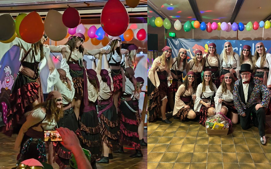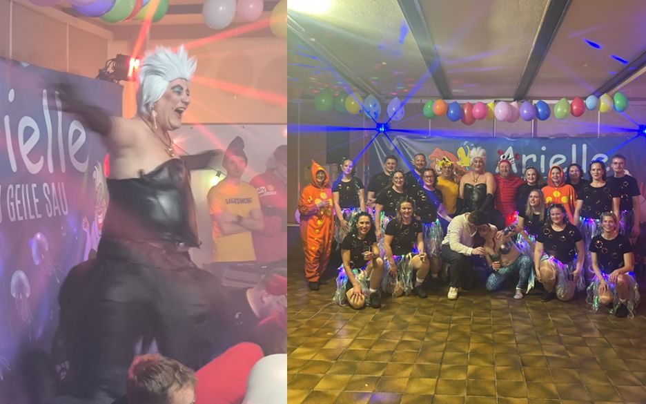 (Mz.) Prächtige Stimmung herrschte in der bunt geschmückten Schützenhalle am vergangenen Samstag in Kirch-Göns. In der gut besuchten Narhalla wurde nach der Begrüßung des 2. Vorsitzenden des Schützenvereins Rolf Hillefeld und Thorsten Metz vom hiesigen Turnverein die Moderation an Rolf Hillefeld übergeben. Zum achten Male veranstalteten der SV und TV das Event im nördlichsten Stadtteil von Butzbach. Nach dem letztjährigen Erfolg erntete man wieder viel Lob von den Gästen. Rolf Hillefeld vom Schützenverein führte als Moderator gekonnt durch das Programm. Mit Fabio Schwenz folgte eine Büttenrede über die Geschehnisse des vergangenen Jahres. Schwenz parodierte über den Ausflug der Rommy-Frauen nach Amsterdam, die künstliche Intelligenz und auch über sich selbst, dass er auch ohne Sport ein toller Typ wäre. Ein möglicher Windradbau auf dem Kirch-Gönser Sportplatz und sein polizeilicher Kontakt bezüglich seines Rollstuhles und den Ermittlungen zu der Verwüstung des Pohl-Gönser Sportplatzes gab Schwanz zum Besten und erntete viele Lacher. Mit dem Einmarsch der Schobbedales und Hotshots aus Leihgestern – unter der Leitung von Simone Riedl – erhitzte sich die Atmosphäre. Die achtköpfige gemischte Gruppe zeigte – in ihrem zwanzigsten Jubiläumsjahr – in Pilotenkostümen mit rhythmischen Bewegungen zu ihrem Thema „Piloten“ einen aufregenden Tanz, wobei sich die Herren zum Tanzende mit freiem Oberkörper präsentierten. Im Anschluss folgten die Hoingkmänner Ewwerschgies mit ihrem Tanz zum Thema „Dschungel Titanen“. Trainerin Jelli Gerhardt verstand es wieder einmal die neunköpfige Männertruppe zu einem tollen Auftritt zu formen. Den nächsten Tanz zeigten die Bierbauchhopser aus Bodenrod. Mit dem Thema „Piratenfight“ traten die die zehn Damen auf. Mit ihrem Tanz in einer „Fluch der Karibik-Manier“ war ordentlich Stimmung gegeben. Diese Präsentation riss das Publikum von den Bänken und löste einen Beifallssturm aus. Es folgte die Showtanzgruppe der großen Garde des Pohl-Gönser Fassenachtsverein. Die jungen Damen um die Trainerinnen Anna-Lena Schilken und Rebecca Högel herum entführten die Zuschauer zu dem Thema „Mitternacht im Hotel“. Abwechslungsreich brillierten die siebzehn Akteurinnen bei ihrem Tanz in ganz besonders schönen Kostümen. Bei der folgenden Prämierung der „Best Kapp“ wurde Monika Diehl in ihrem „Badekappe, Schwimmbrille, Handtuch und Bademantel Kostüm“ prämiert und erhielt einen Getränkegutschein für die Sektbar. Der letzte Showact gehörte dem Lokalmatador. Die einundzwanzigköpfige Tanzformation „Mibdance“ überzeugte in ihrem achtundzwanzigstem Auftrittsjahr mit ihrer Vorführung zu dem Thema „Arielle die Meerjungfrau“. Mit den einzelnen Charakteren Krebs Sebastian (Mario Wilhelm), Doktor-Fisch Fabius (Markus Henseling), Krake Ursula (Thorsten Metz), Prinz Eric (Nick Diehl), Meerjungfrau Arielle (Sebastian Nitsche), den Seesternen (Steffi Henseling und Silke Wilhelm) und den vielen Quallen war die Schützenhalle kurz vor dem Explodieren. Mit beleuchteten Regenschirmen, die Quallen darstellten und den bunten Tentakel-Kostümen wurde die Geschichte zur Verwandlung der Meerjungfrau in einen Menschen dargestellt. Die Darbietungen auf die stimmungsvolle Musik hatten Tina und Lara Ceh einstudiert. Nach dem Auftritt folgte unter tosendem Applaus eine Zugabe der Meerestänzer und -tänzerinnen. Im Anschluss nahmen viele der Gäste an der Polonäse teil. Unter der Leitung der DJ´s LIAMBRM und Felix konnten die Besucher noch bis in den frühen Morgenstunden ausgiebig das Faschingstreiben feiern. (Text: Thorsten Metz; Bilder div. Teilnehmer)